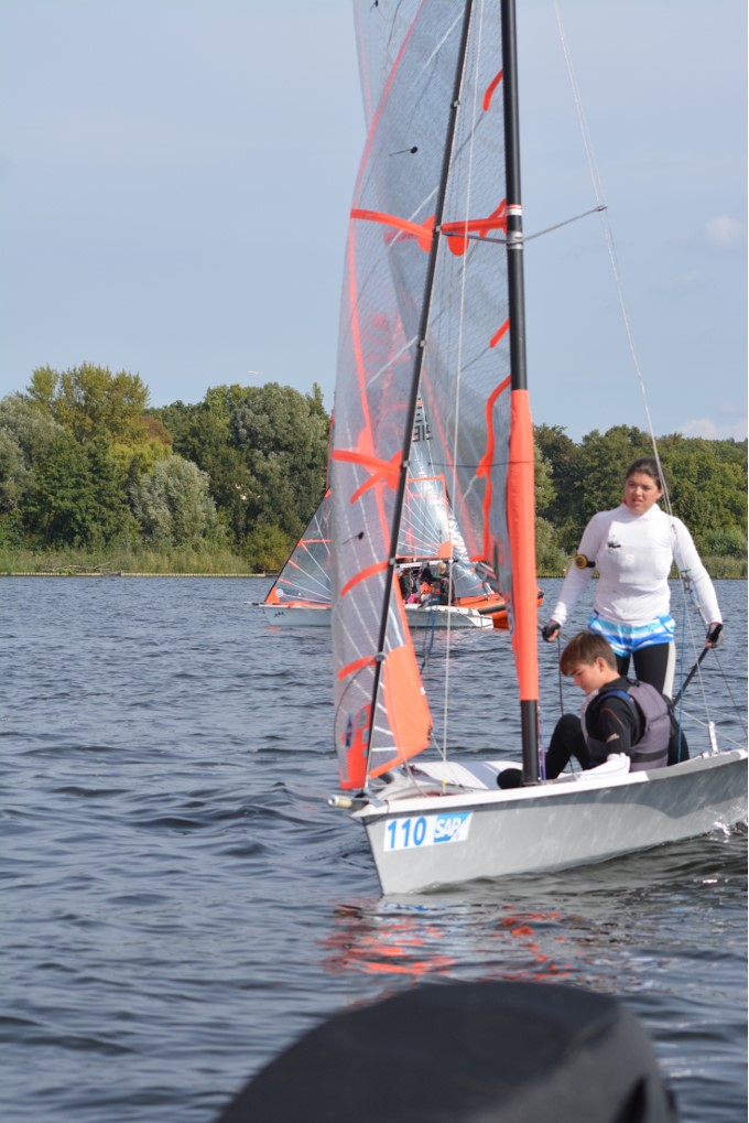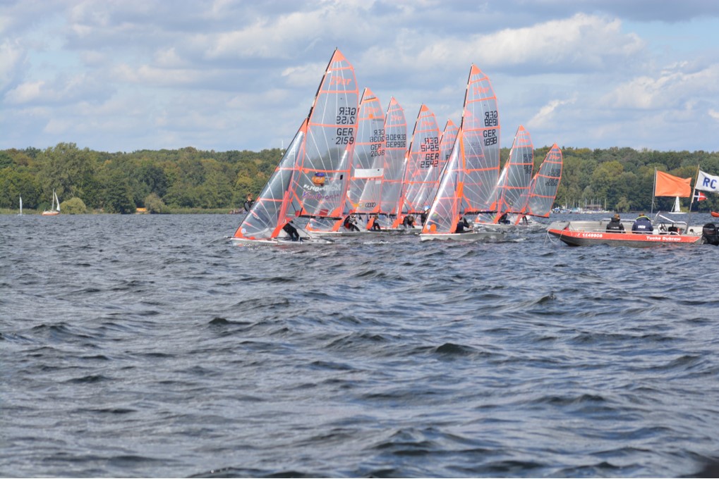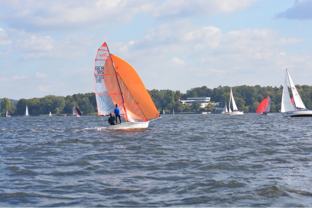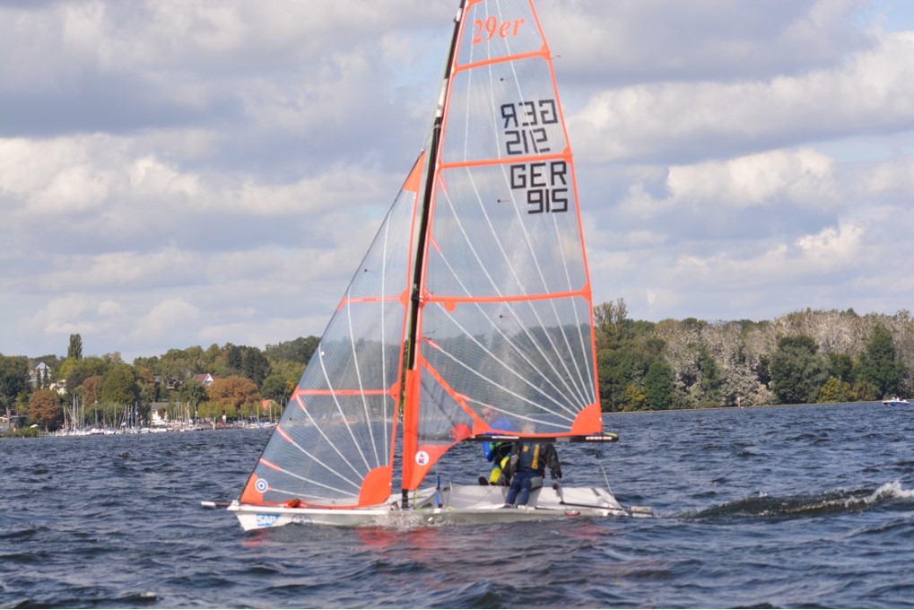 Am Samstag, den 15.09., wurden morgens die Boote aufgebaut und sich angemeldet, nachdem alle fertig waren ging es auch schon los, raus auf den Wannsee, denn für 11 Uhr war bereits der erste Start angesetzt. Es war ordentlicher Wind, wie vorhergesagt und die Segler hatten Spaß. Insgesamt wurden, bei den 29ern, an diesem Tag 5 Wettfahrten gesegelt. Nach dem alle 5 Wettfahrten geschafft waren und die Boote abgebaut und ihre Persenningen verpackt waren, ging es zum Essen, zu guter Letzt ließen sie den Tag entspannt mit etwas Boatwork und Kartenspielen ausklingen.